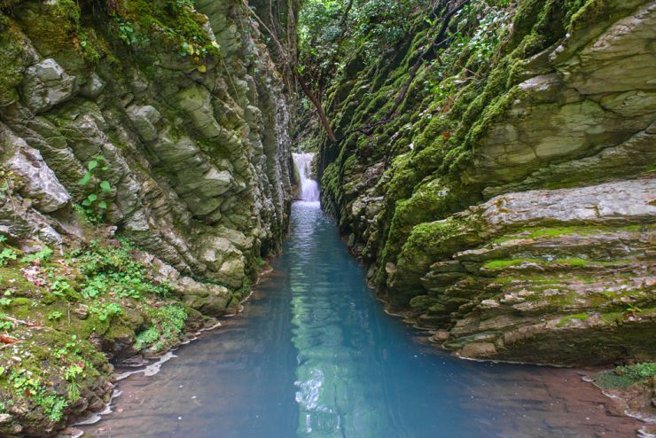 Всем известное Крабовое ущелье считается частичкой национального парка в городе Сочи, который был открыт в конце 20 века. По своим размерам оно вовсе не крупное, представлено ручьем, который стекает с высоты 500 метров, а затем просто попадает в реку. Когда-то давно достояние природы образовалось около 60-70 миллионов лет назад, в те времена это было все просто море, где жили морские обитатели, которые своими панцирями смогли образовать пласты из известняка. После того как в этой местности происходили изменения из-за природных явлений, то местность эта стала подниматься намного выше чем сам океан и даже река, которая протекает в скалистых ущельях этой очаровательной местности. Таким образом речка смогла вымыть каньон вместе с гротом, который теперь и называется Крабовое ущелье.