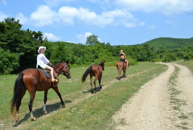 Для начала вас познакомят с прекрасными животными. У всех лошадок в этом заведении есть свое имя. В то время когда будет проходить экскурсии, вам следует обязательно называть свою лошадку по имени, а также старайтесь часто хвалить ее и поощрять. Затем вам специалисты проведут полный инструктаж по технике безопасности. Маршрут путешествия будет пролегать вдоль хребта, виноградников, которые пролегают вблизи Черного моря. Как только ваш путь остановиться на роднике, то у вас будет шанс отдохнуть, а еще попить горной воды или просто ополоснуть лицо от жары. Вам будет дана возможность сделать фотографии, а еще вы сможете пообщаться с лошадками. Как только маршрут будет проходить на спуске с этой горы, то вы сможете осмотреть всю бухту Кабардинки.